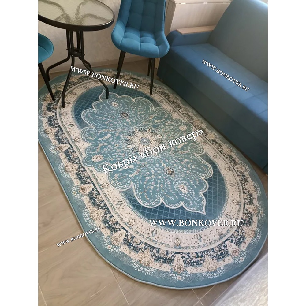 Турецкий Ковер Для гостиной New дизайн 079 Овал станет гармоничным дополнением интерьера, оформленного в современном или классическом стиле. Мягкое, но прочное, ковровое изделие обеспечивает тепло- и шумоизоляцию, отличается длительным периодом эксплуатации, пожаробезопасностью, экологичностью и высокой износостойкостью, является отличной преградой от повышенной влажности в комнате и утеплителем для холодного пола. Благодаря качеству материалов, ковер не деформируется, сохраняет первоначальный вид под тяжестью предметов мебели. За его поверхностью легко ухаживать.